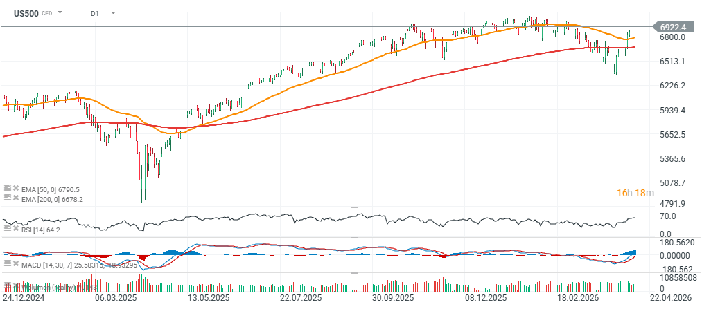 Los futuros de los índices estadounidenses operan levemente a la baja este martes, aunque mantienen una sólida tendencia alcista. El US500 se ubica en torno a los 6.920 puntos, cerca de 100 unidades por debajo de su máximo histórico.